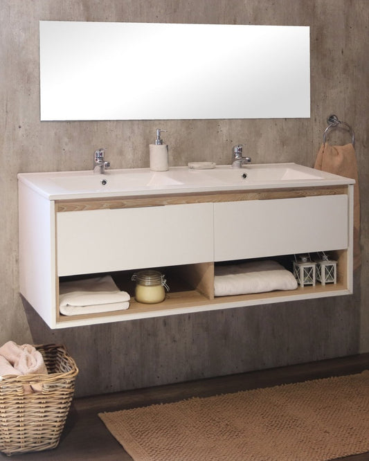 Stylo deluxe | Double Drawer Floating Bathroom Vanity Cabinet | Washed Shale