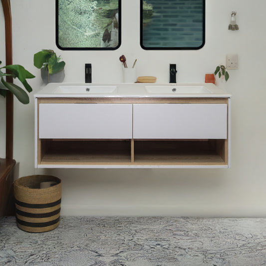 Stylo deluxe | Double Drawer Floating Bathroom Vanity Cabinet | Washed Shale