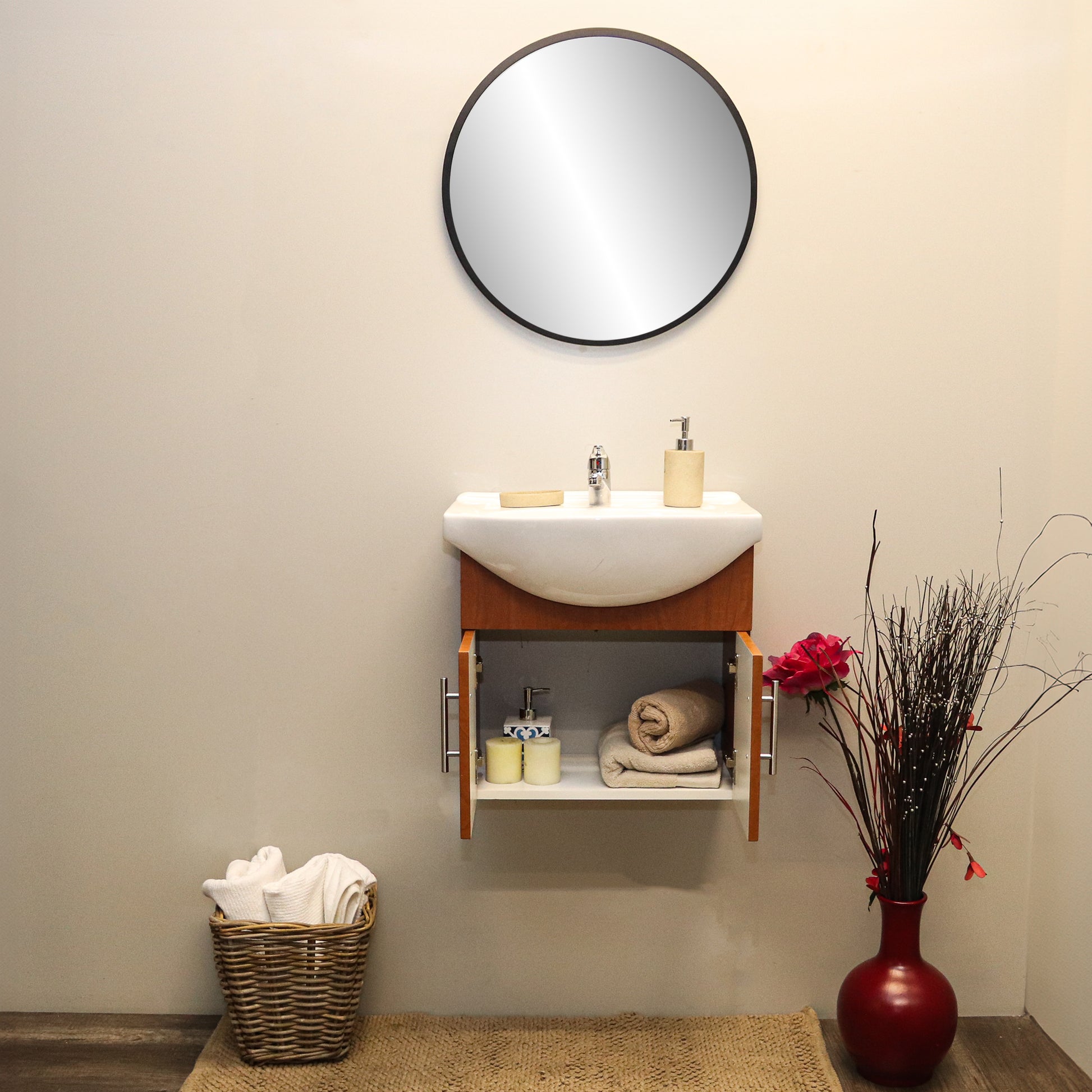 Expertly crafted with a finished cherry exterior, the Denver Tiffany Wall Hung 2 Door Cabinet 550 offers a sleek and elegant addition to any bathroom. Its wall-hung design allows for added space and convenience, while the two doors provide ample storage for all your essentials. Upgrade your vanity with this stylish and functional cabinet.