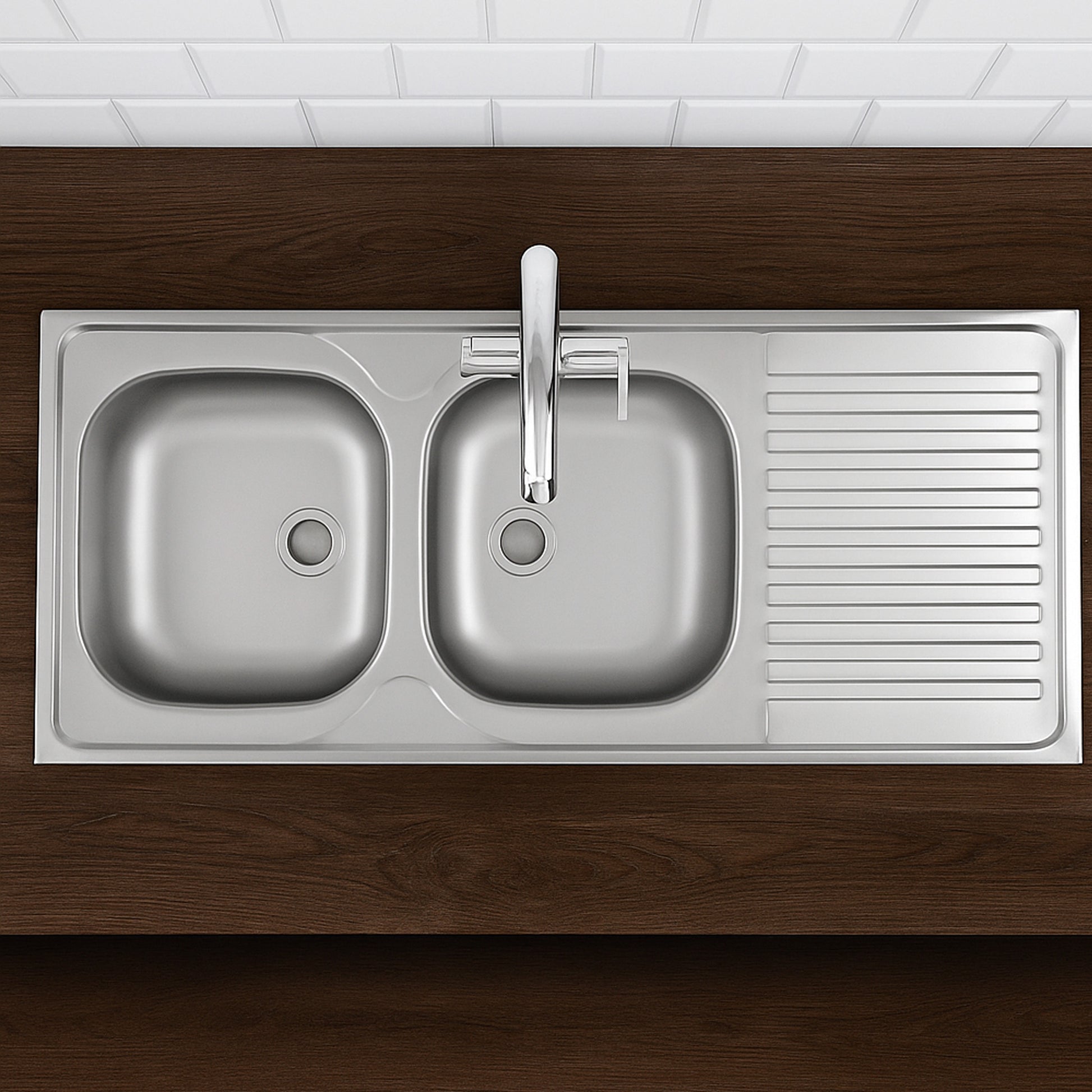 This stainless steel sit on sink offers both style and functionality. With its spacious 50X120 dimensions and double basin, it provides ample room for all your cleaning and food preparation needs. Made from durable stainless steel, this sink is built to withstand the test of time. Upgrade your kitchen with this quality sink today.