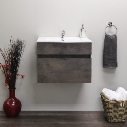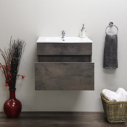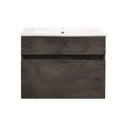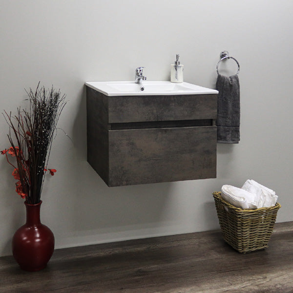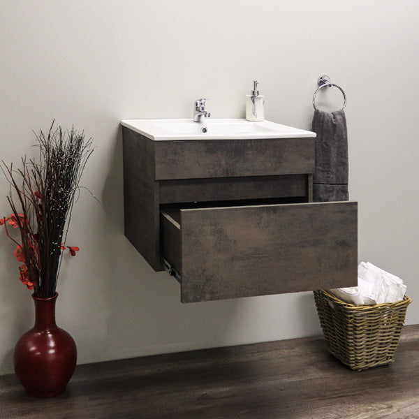 The Stylo Oxide floating bathroom vanity cabinet is a modern styled wall mounted bathroom vanity in Oxide finish. The Stylo vanity is complete with premium ceramic basin and single drawer for storage