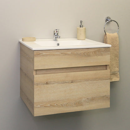 Stylo Floating Bathroom Vanity Cabinet with White Ceramic Basin | Washed Shale